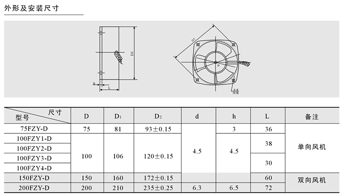其他參數 | 產品型號 | FZY-D單法蘭儀表風機系列 |
