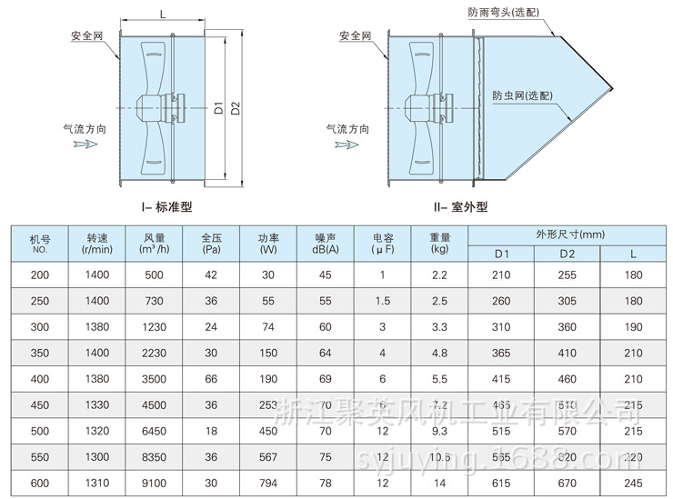 邊墻防爆軸流通風機規格參數 | |