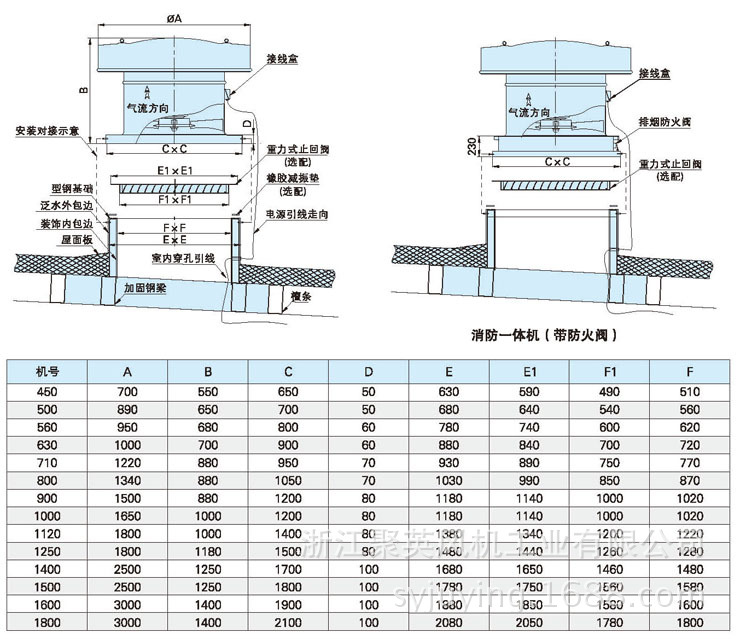 5、訂貨時請明確所需選配安裝附件,如排煙防火閥、重力式止回閥、檢修開關、防鳥網、橡膠減震墊、電氣控制箱。