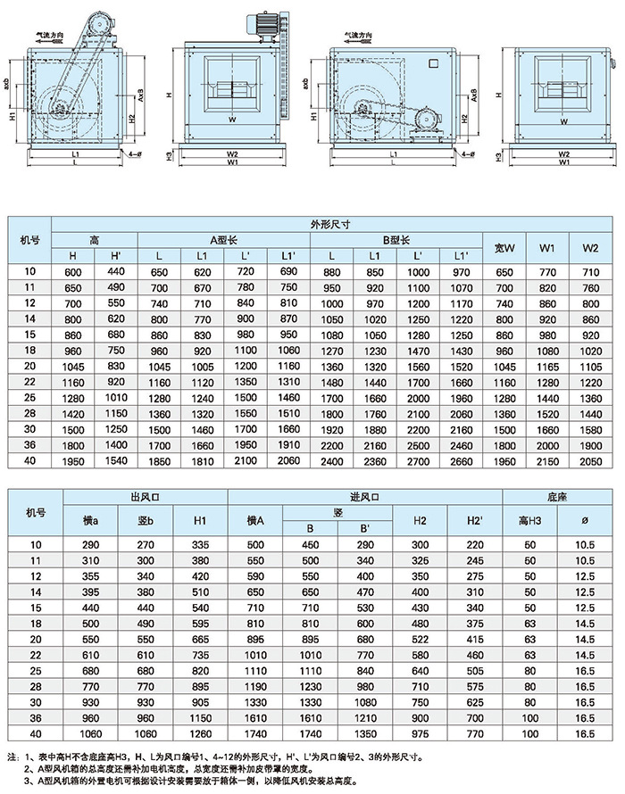 I型為單速中低壓型,壓力在1000Pa以下,II型為雙速中低壓型,III型為高壓型,壓力在1000Pa以上。