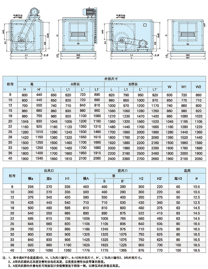 BHTFC防爆柜式離心風機的規格參數 | |