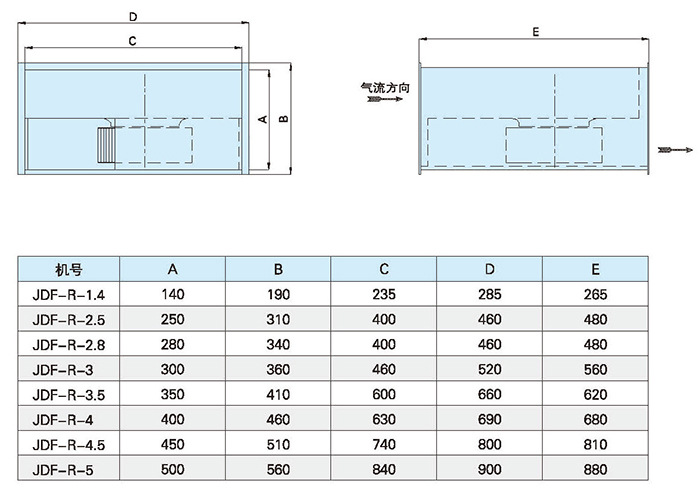 JDF-R矩形管道風機采用低噪聲電機與高效前傾離心葉輪直聯傳動,機殼采用鍍鋅板TOX免焊鉚接制成。獨特的矩形進出風口,可直接與風管同軸安裝而不需機房,結構緊湊、高度低。具有風量大、風壓適中、噪聲低、耗電省、安裝方便、運行穩定等優點,廣泛應用于賓館、醫院、體育館、圖書館、商場等民用商用建筑工程需要低噪聲通風場合。