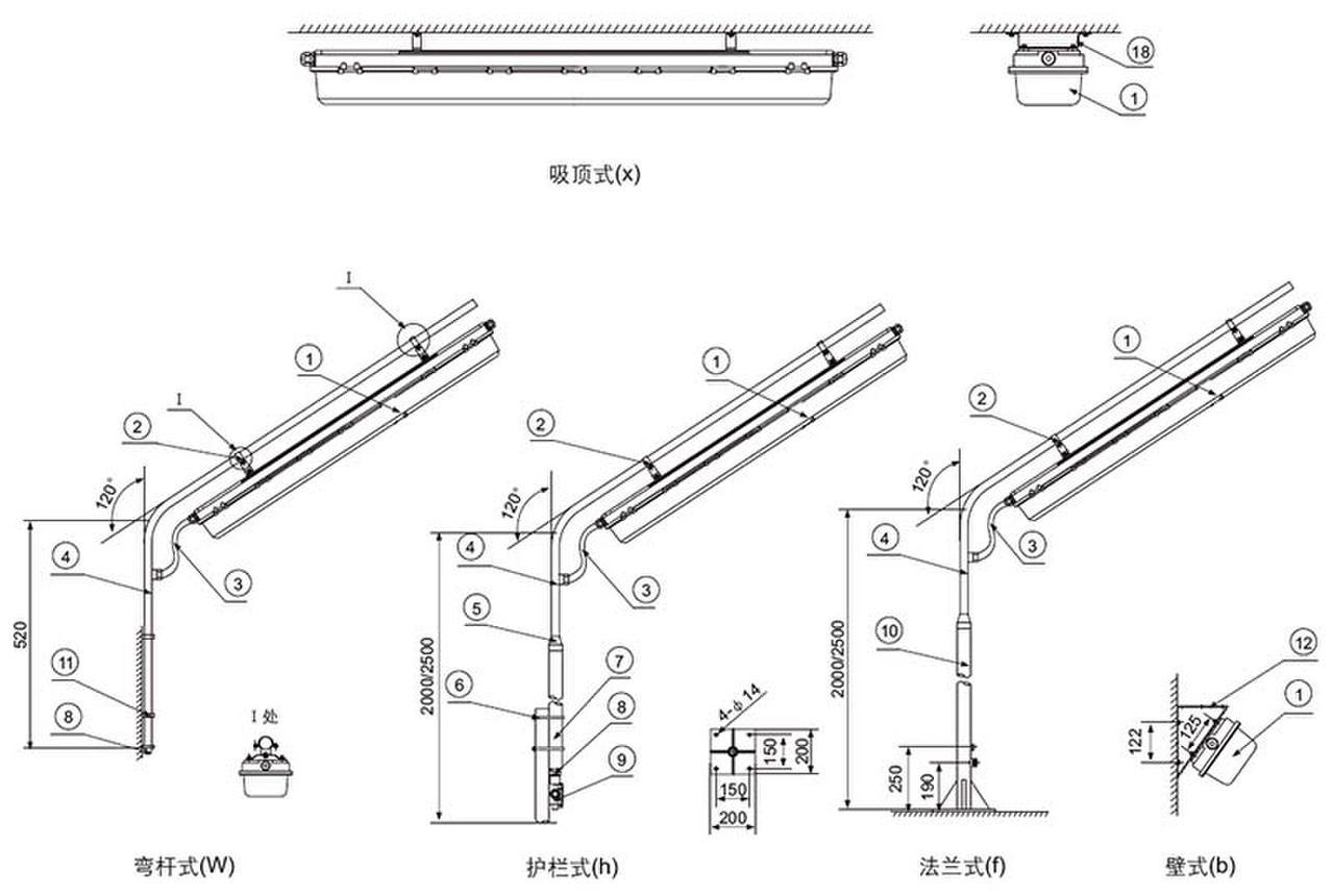 ● 內裝鎮流器為我公司特制的防爆鎮流器,其功率因數cos∮≥0.85;