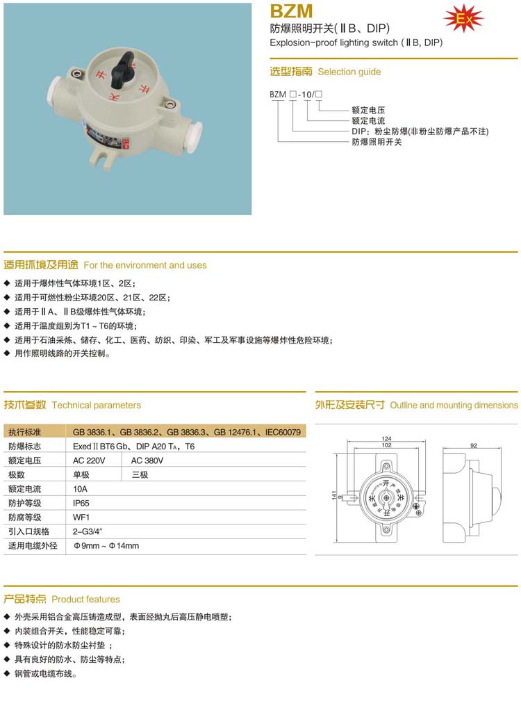 首頁>防爆箱柜開關>開關類>防爆照明開關 > BZM防爆照明開關(IIB、DIP)