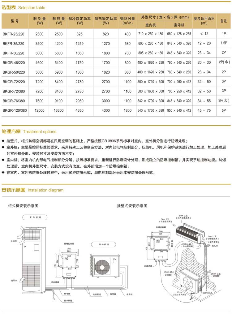 防爆柜式空調機規格參數 | |