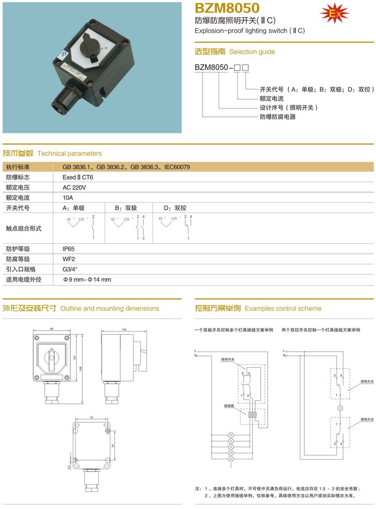 首頁>防爆箱柜開關>開關類>防爆照明開關 > BZM8050防爆防腐照明開關(IIC)