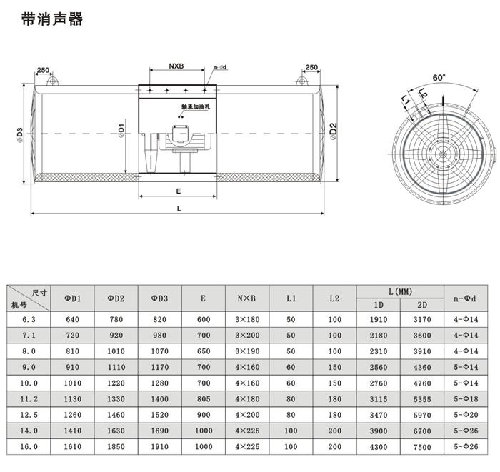 消(xiao)(xiao)聲(sheng)(sheng)器(qi)(qi):消(xiao)(xiao)聲(sheng)(sheng)器(qi)(qi)長度通常為(wei)風機直徑的(de)一倍,當噪聲(sheng)(sheng)要求高時,亦可(ke)以取風機直徑的(de)二倍,消(xiao)(xiao)聲(sheng)(sheng)器(qi)(qi)與風機本體采用(yong)螺栓固(gu)定(ding)。