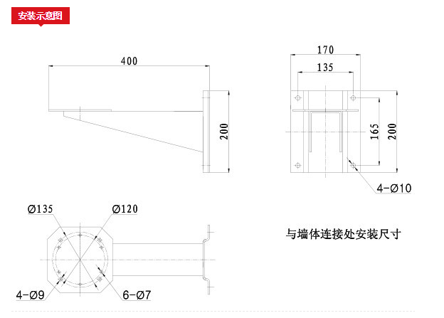 該萬向儀支架為防爆萬向攝像儀系列產品標準配套支架,防爆萬向攝像儀的安裝方式為壁裝或立桿。安裝尺寸詳見產品技術參數。