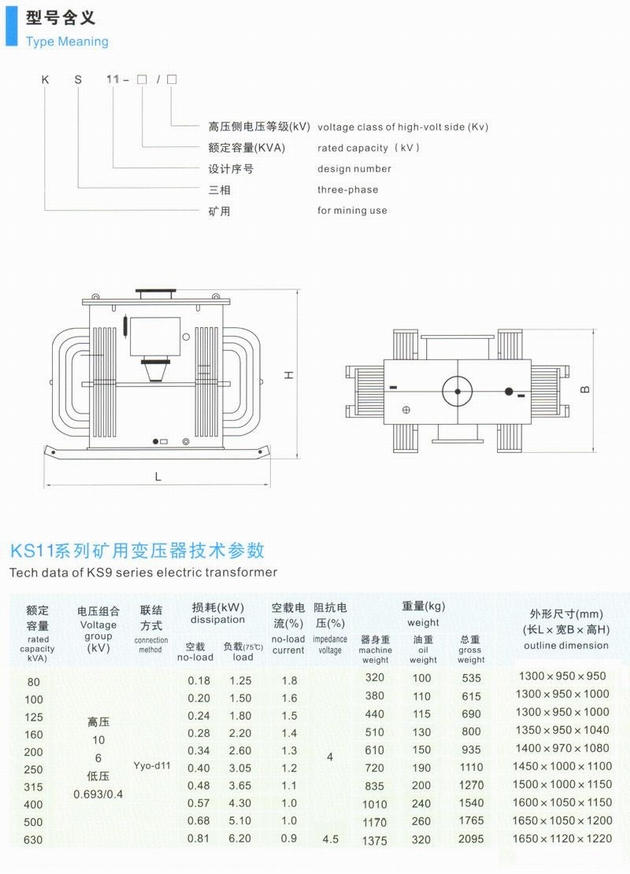 我廠生產的礦用隔爆型移動變電站KBSGZY50-2500KVA系列,KS11-50-1250KVA一般型礦用變壓器系列產品廣泛應用于各大煤礦企業,被幾大部委列為新產品推廣. 我廠是較早通過ISO9001:2000質量管理體系認證的變壓器廠家,所有產品(KS系列礦用一般型電力變壓器、S11、SH15系列油浸式電力變壓器、SCB系列樹脂絕緣干式變壓器)煤安證、防爆證、生產許可證等資質證件齊全,我們產品以一流的質量、合理的價格、優良的服務,深受用戶好評,市場覆蓋各大礦區,具有良好的市場信譽。