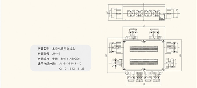 首頁>礦用防爆>電氣設備>防爆電器件>防爆接線盒 > 本安電路用分線盒JHH-6[十通(30對)A2B4C2D2] 防爆接線盒