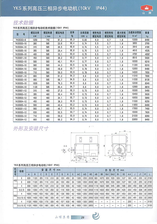 產品型號 | YKS系列高壓三相異步電動機(10kV IP44) |