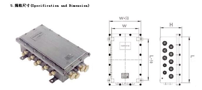 Note:</strong> flameproof junction box, size is 350*200*120mm, M20 holes with inner thread: 14 pcs, M40 holes with inner thread: 2 pcs, terminal: 27 pcs..
