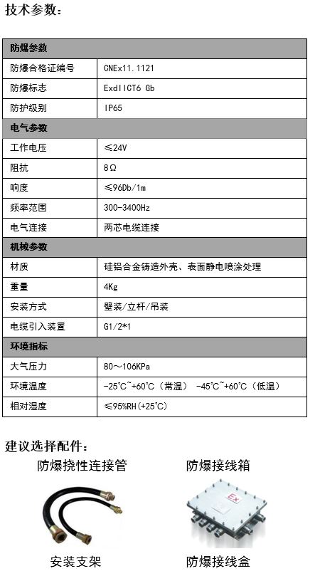 防爆揚聲器規格參數