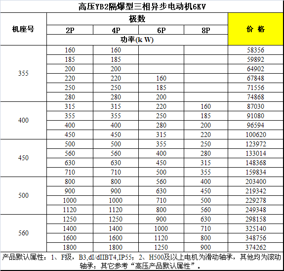 高壓隔爆型三相異步電動機規格參數 | |