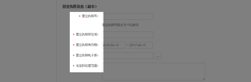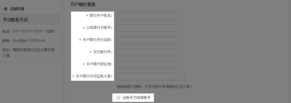 6、填寫公司營業執照信息(xi),電子(zi)版需(xu)加蓋企業公章并(bing)保(bao)證圖片清晰。