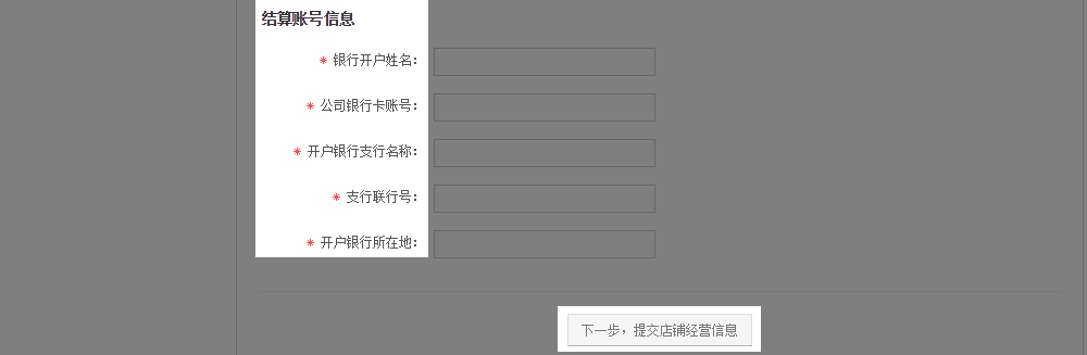 9、填寫結(jie)(jie)算(suan)帳號信息(在上一(yi)步把開戶(hu)帳號做(zuo)為結(jie)(jie)算(suan)帳號的(de)此處不再顯(xian)現),點擊(ji)下一(yi)步。