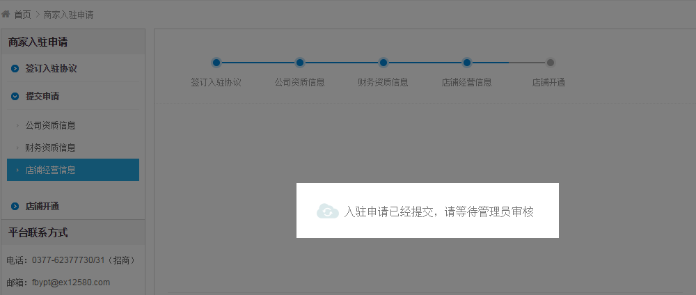 11、提交入駐申請(qing)后,等(deng)待管理員審核,3個工作日(ri)內(nei)給予回復。