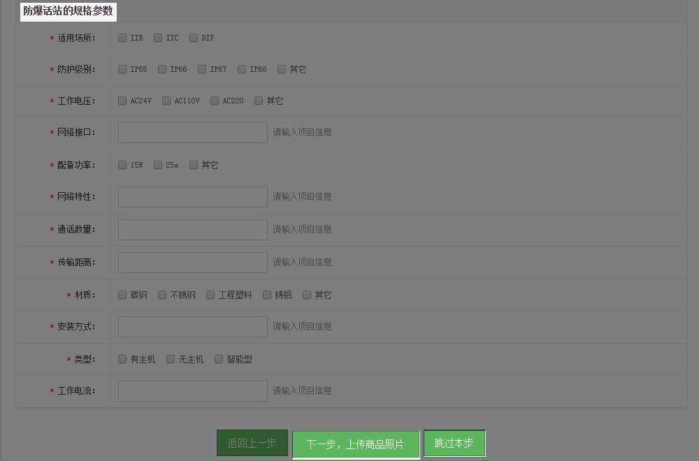 6、填寫具體(ti)商品(pin)參數信息(xi)。點擊下一步(bu),或者此處不想顯示過多的(de)參數,可以選擇“跳過本(ben)步(bu)”。