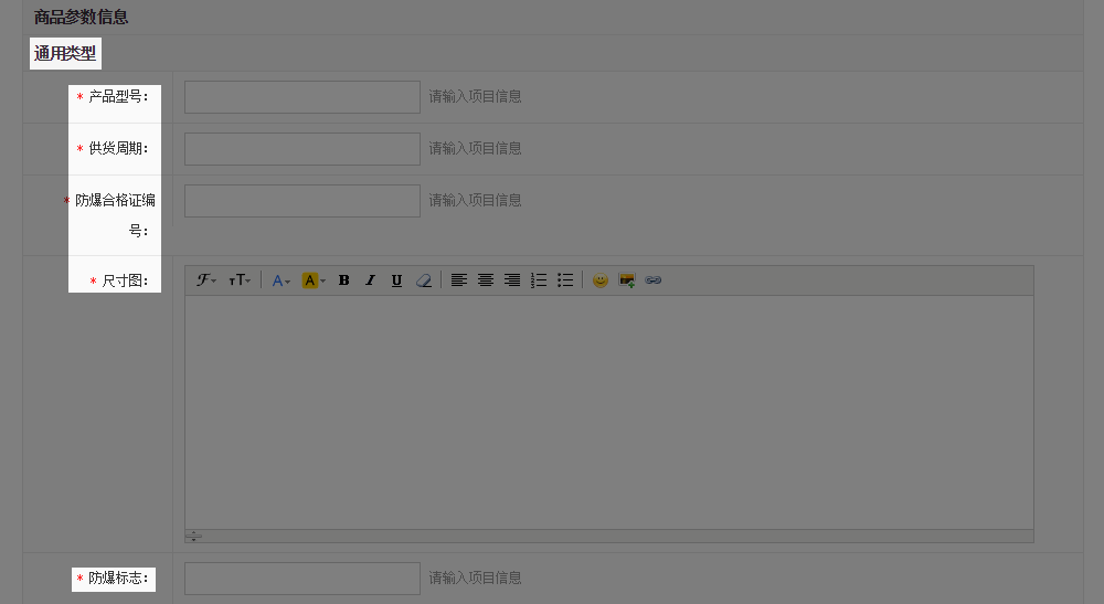 5、填寫商品(pin)通用類型(xing)參數(shu)。