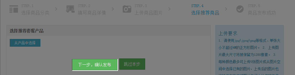 4、按照提(ti)示上傳(chuan)商品圖片(pian)和(he)相應的信(xin)息,填寫完畢(bi)后點擊(ji)下一(yi)步。