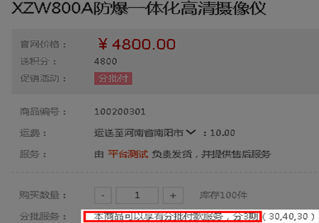 在防爆云平臺選購您喜歡的商品(pin),商家允許(xu)分期付款(kuan)的產品(pin)可以使用分批付。(具體分期方式,分幾次付清由商家自己確定)