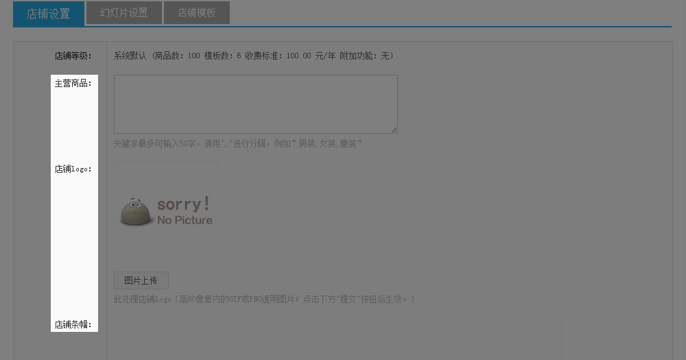 2、按照提示(shi)填寫(xie)或修改(gai)店(dian)鋪主營商品,上傳店(dian)鋪logo、店(dian)鋪(pu)條(tiao)幅等基本信息。