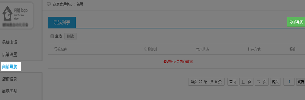 7、打開商鋪(pu)導(dao)航,設置店鋪(pu)的導(dao)航欄,點擊“添加導(dao)航”。