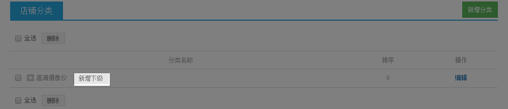 13、要(yao)在首級(ji)(ji)分類下(xia)增添二級(ji)(ji)分類時,點擊“新增下(xia)級(ji)(ji)”對已(yi)添父(fu)類添加下(xia)級(ji)(ji)。