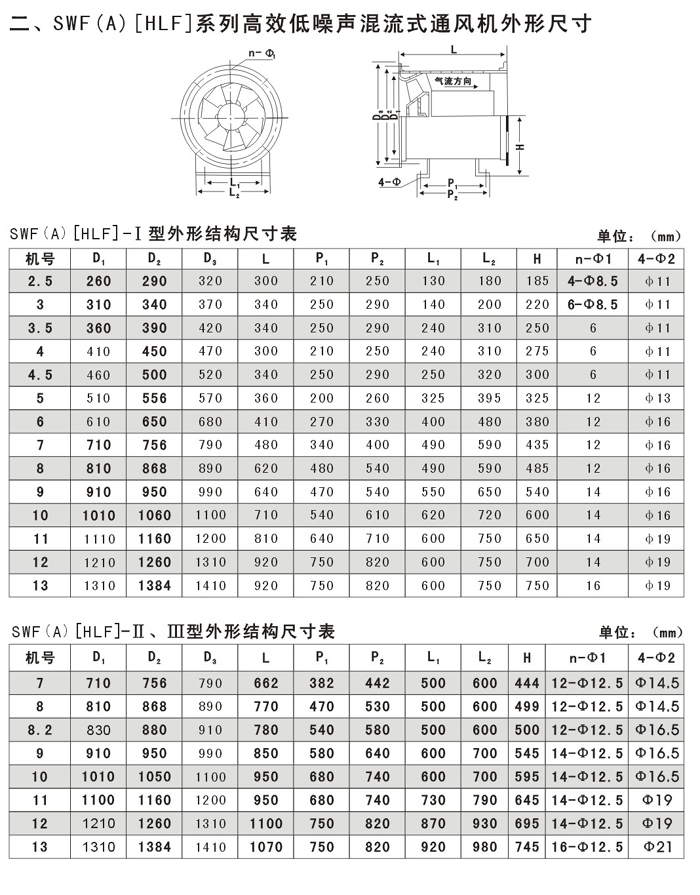 產品型號SWF(A)、FLF系列低噪聲混流式通風機