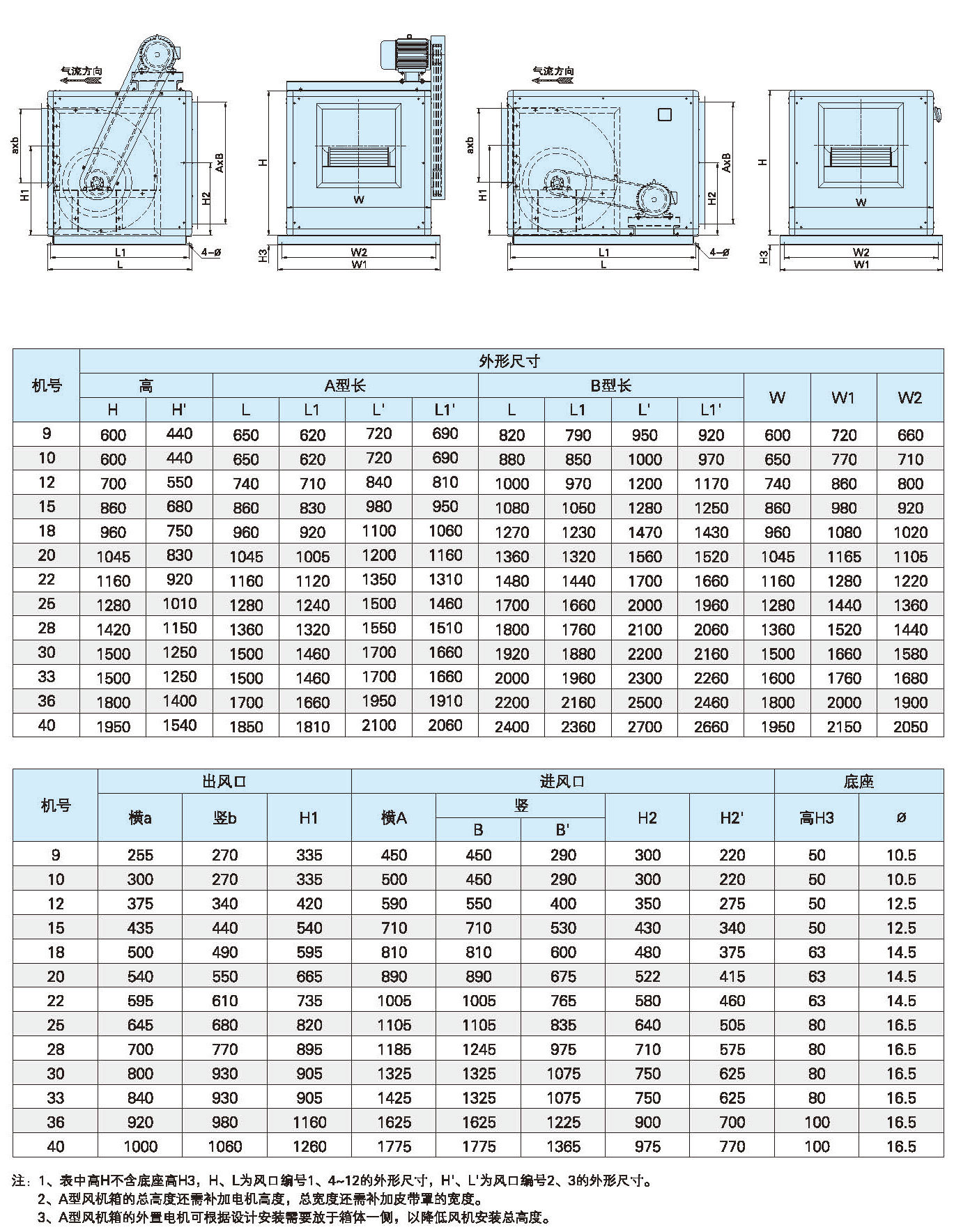 BHTFC防爆柜式離心風機的規格參數 | |