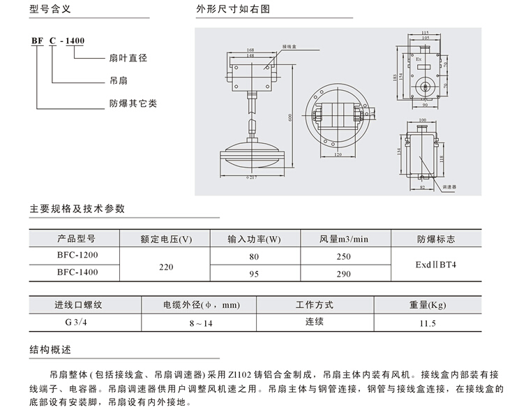 首頁>防爆風機>防爆軸流風機>防爆吊風扇 > BFC-1200/1400防爆吊風扇