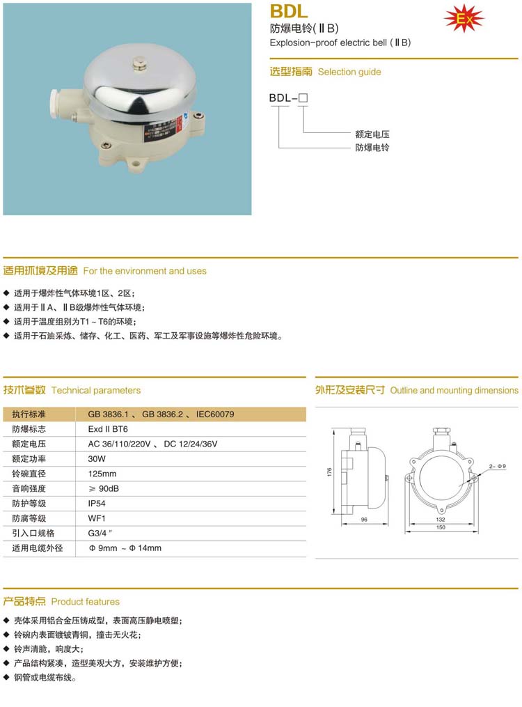首頁>防爆附件>防爆電鈴 > BDL防爆電鈴(IIB)