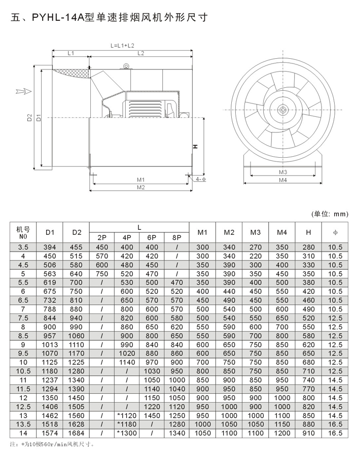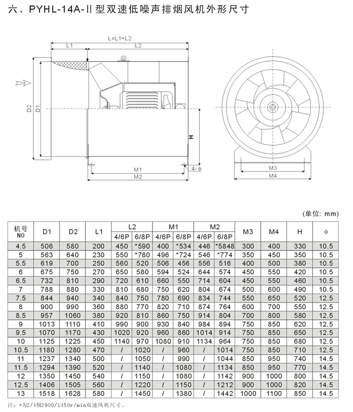 PYHL-14A風(feng)(feng)機Ⅰ型(xing)單(dan)速(su)結(jie)構緊湊,節省安裝空間。Ⅱ型(xing)雙速(su)在進風(feng)(feng)口(kou)設風(feng)(feng)口(kou)消(xiao)聲集流器,使(shi)風(feng)(feng)機在低(di)速(su)排風(feng)(feng)時運(yun)轉(zhuan)噪音更低(di)。