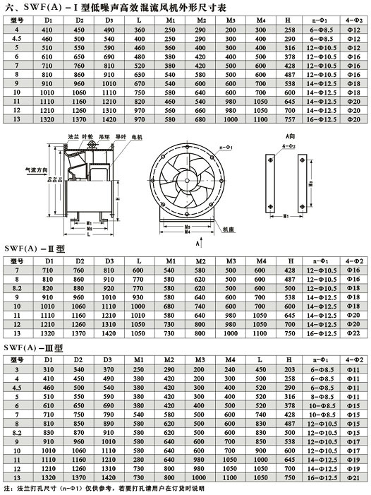 SWF(A)【HLF】系(xi)列低(di)噪聲混流(liu)(liu)風機(ji)(ji)針對目(mu)前通風空調系(xi)統(tong)(tong)中,經常出現的(de)風機(ji)(ji)壓力偏高而流(liu)(liu)量(liang)不足或流(liu)(liu)量(liang)偏大而壓力不夠的(de)這(zhe)種系(xi)統(tong)(tong)與風機(ji)(ji)不相匹配的(de)情形,我(wo)們根據“準三元”理論(lun)和“子午加速”設計方(fang)法,研制成(cheng)功比(bi)轉(zhuan)數介(jie)于離心(xin)(xin)和軸流(liu)(liu)之間,壓力系(xi)數高于軸流(liu)(liu)風機(ji)(ji)和流(liu)(liu)量(liang)系(xi)統(tong)(tong)高于離心(xin)(xin)的(de)一(yi)種新型風機(ji)(ji)。因此,用(yong)戶(hu)選型范圍更(geng)為廣泛(fan),系(xi)統(tong)(tong)匹配更(geng)趨合理,有利于系(xi)統(tong)(tong)節能。它是目(mu)前通風機(ji)(ji)中適宜管道(dao)加壓系(xi)統(tong)(tong)的(de)新型產品。