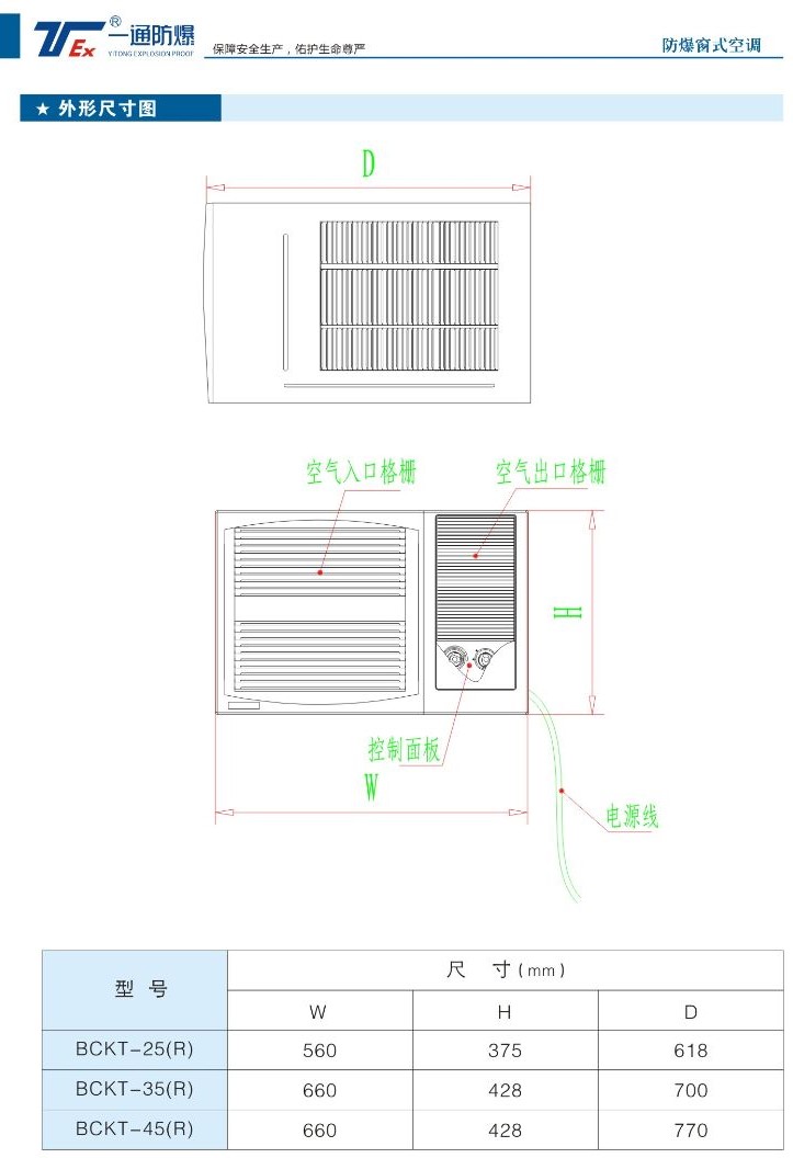 BCKT系列防爆窗式空調 110/220V 50/60Hz ⅡBT4