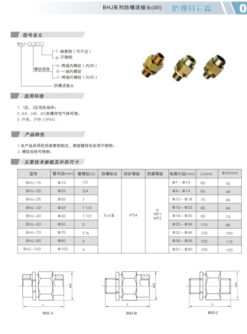 碳素鋼304不銹鋼BHJ系列防爆活接頭(ExdII)