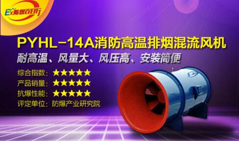 PYHL-14A系列排煙風機采用CAD軟件多目標優化設計,選配模壓扭曲翼形錐形葉輪,內置高溫電機,配設專門的電機冷卻系統。選用雙速電機直聯傳動,達到一機兩用(即平時送排通風和消防使用時高溫排煙),配設電控箱后可遠程自動控制。具有耐高溫性能優良、風量大、、風壓高、安裝簡便等優點,廣泛應用于高層建筑、烘房、地下車庫、地鐵、隧道等場合消防排煙和送排通風。按GA211-1999消防見機耐高溫試驗方法,能在400℃高溫條件連續運行100分鐘以上,介質溫度100℃條件下連續運行20小時/次不損壞,已被全國大城市消防部門認可采用。